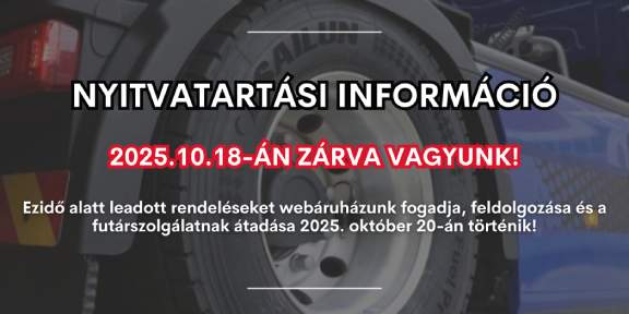 Központi telephelyünkön 2025. október 18-án munkaszünet lesz, emiatt cégünk zárva tart.