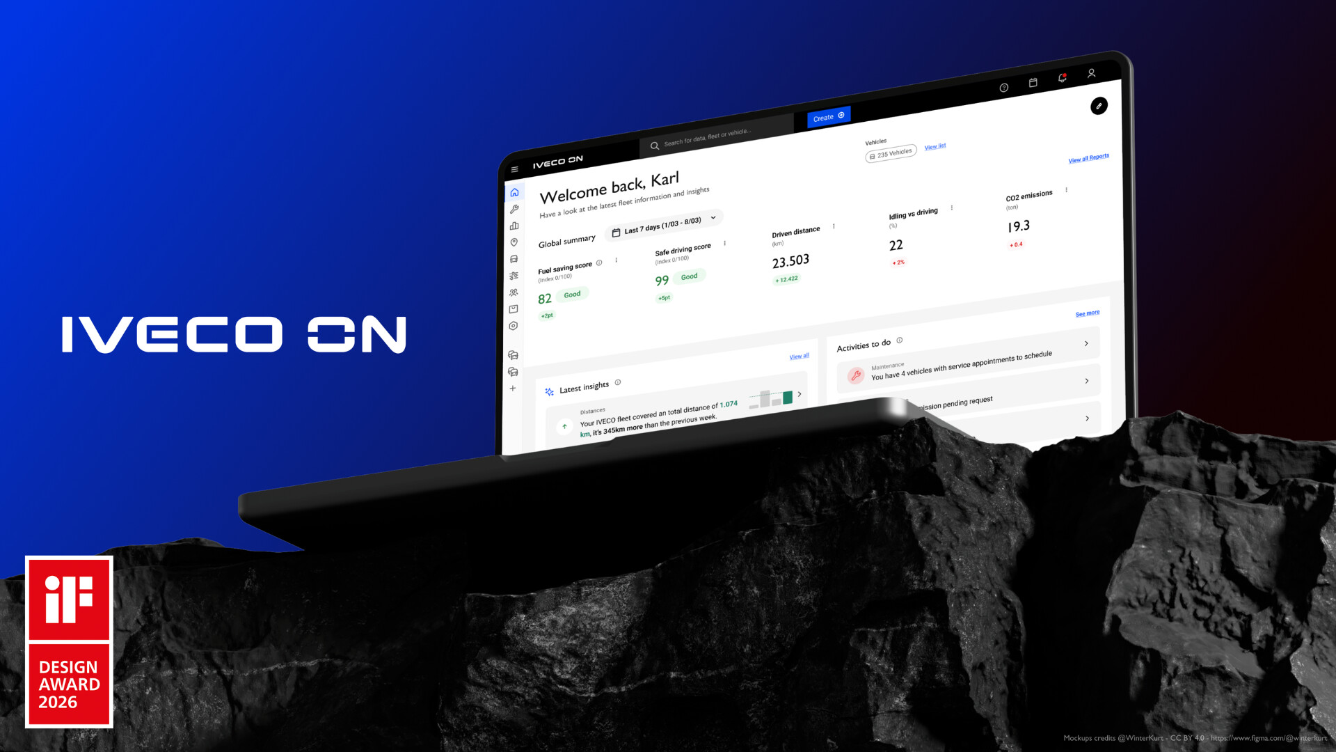 Ezzel a díjjal az iF DESIGN zsűri elismeri az IVECO vezető szerepét a szállítmányozási ágazat számára kifejlesztett fejlett, emberközpontú digitális megoldások terén. Az IVECO ON új mércét állít fel a flottamenedzsment terén azáltal, hogy nemcsak az adatgyűjtésre, hanem a betekintésre, az alkalmazkodóképességre és a kiváló tervezésre is összpontosít.